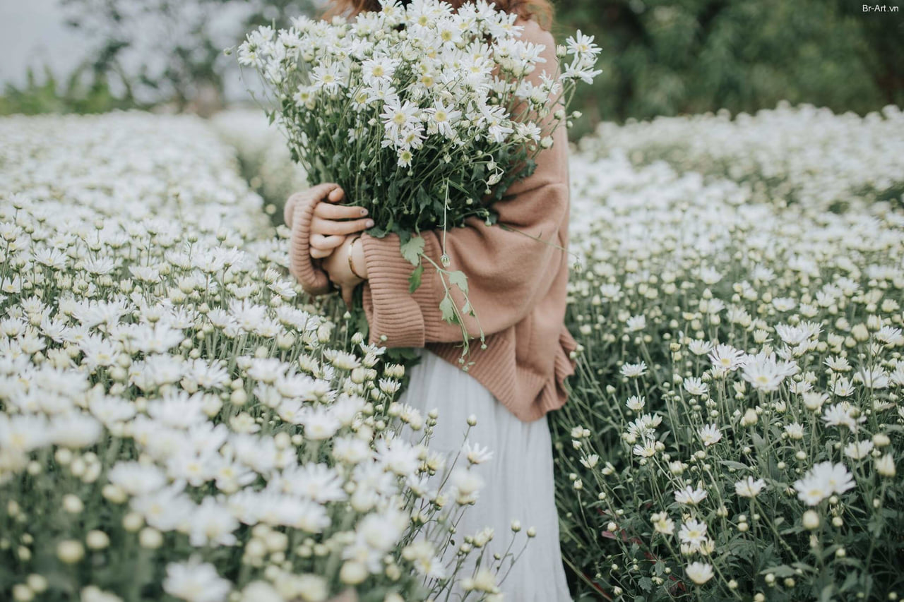 – Take photos with daisy flowers (cúc họa mi)